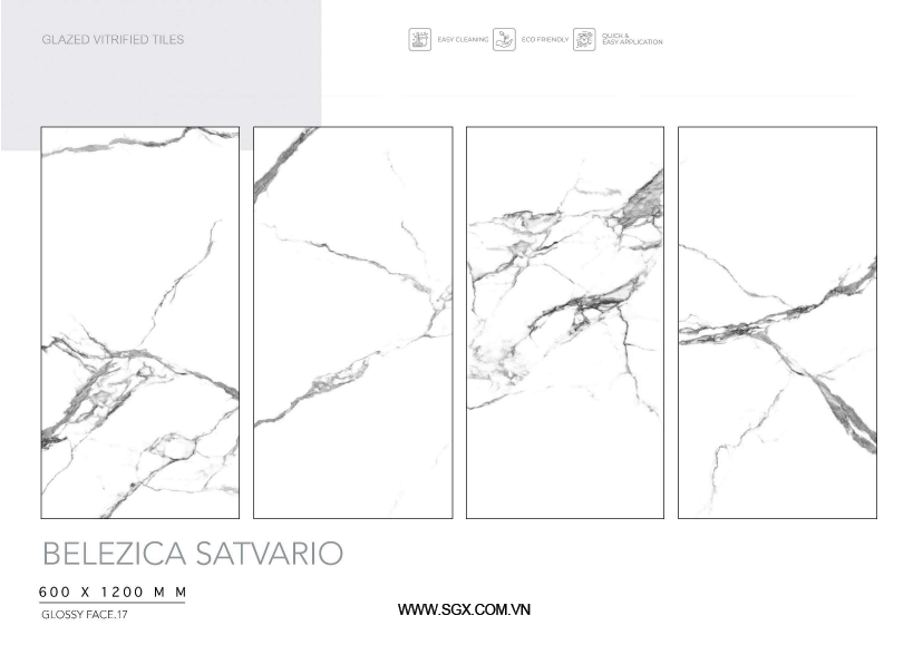 - Chất liệu Glossy của gạch bóng loáng cho phép ánh sáng phản chiếu trên bề mặt, làm tăng độ sáng và sự rực rỡ của gạch
