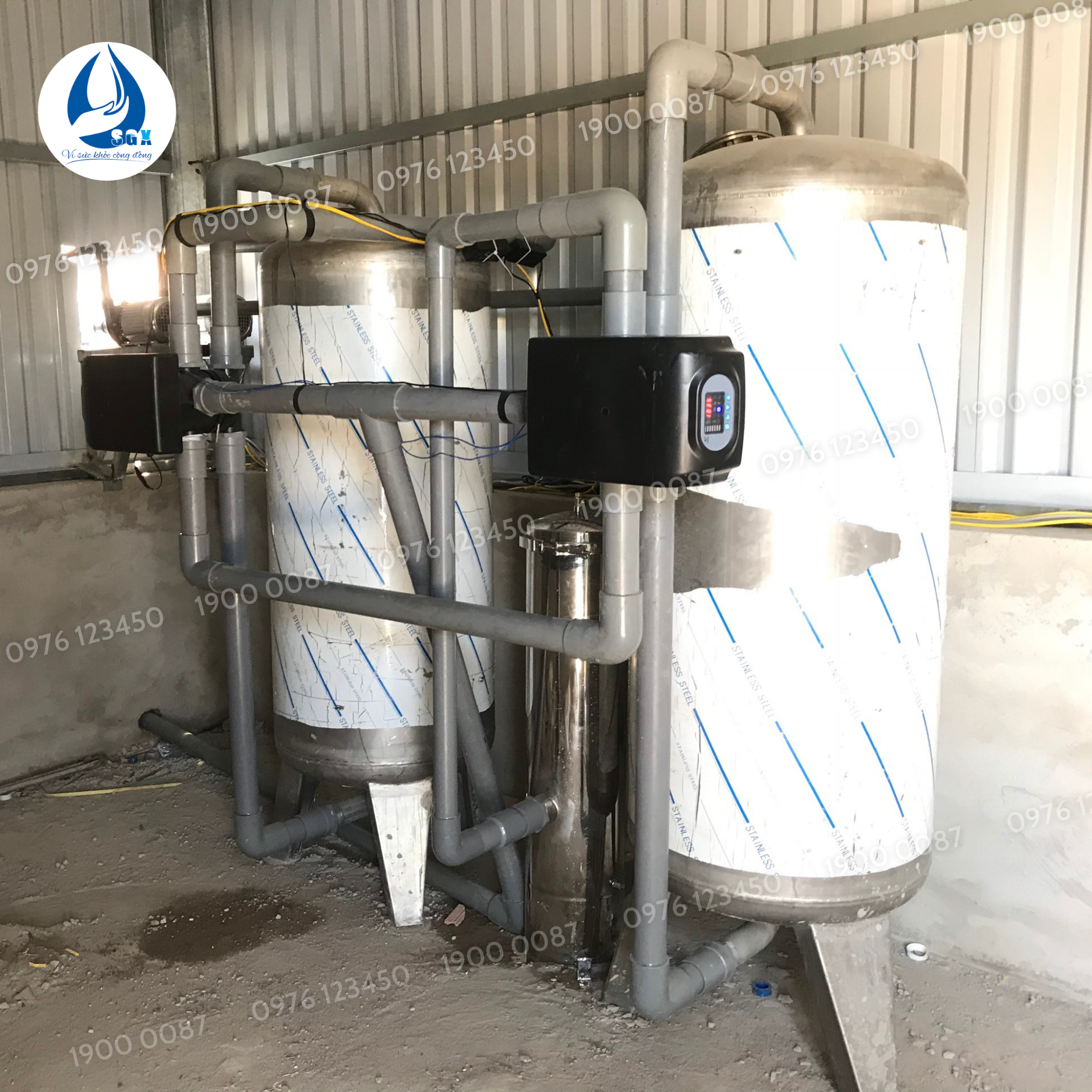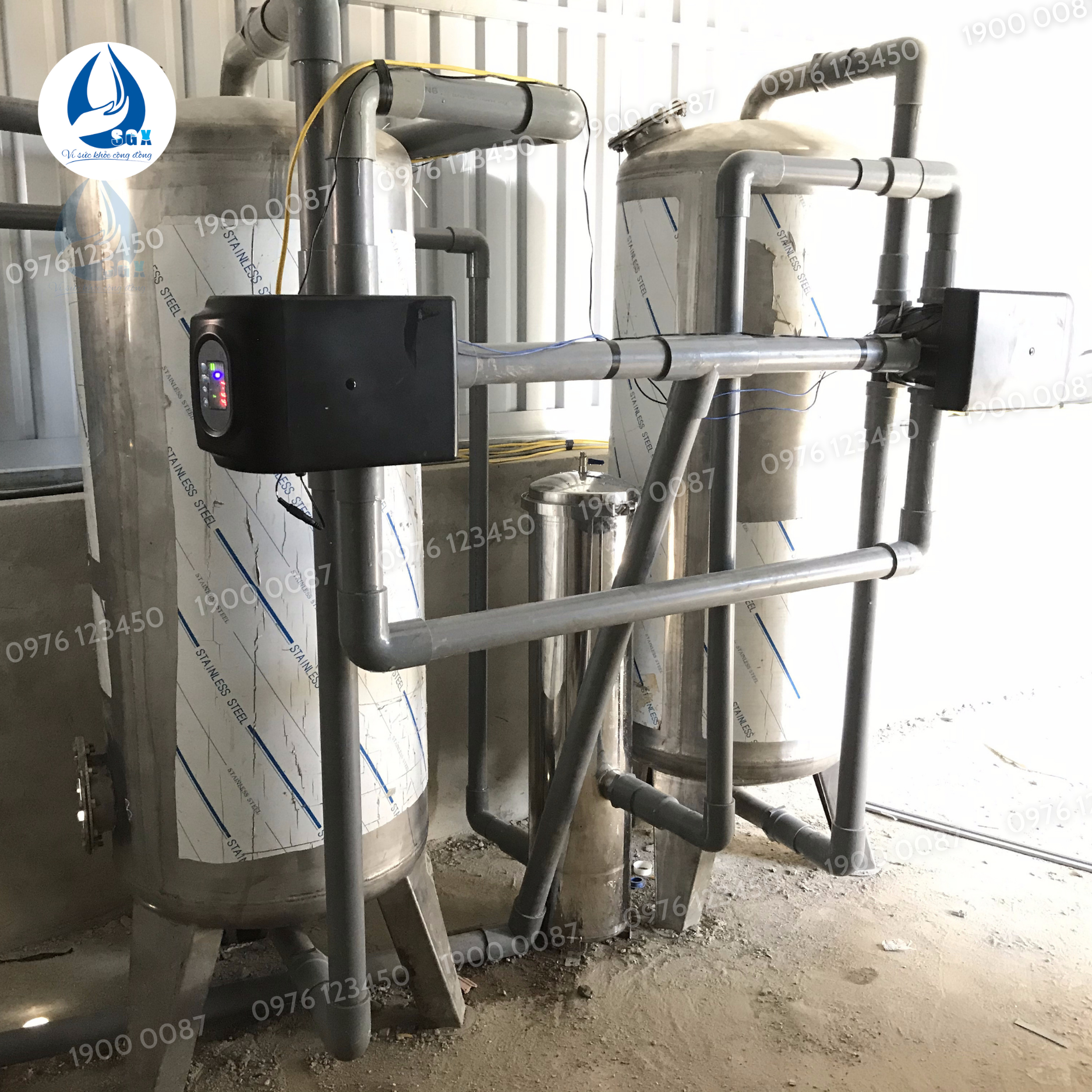 – Bộ lọc gồm: 2 cột Inox SUS304 siêu bền, đường kính 600mm, cao 2 mét , ống Bình Minh D49mm