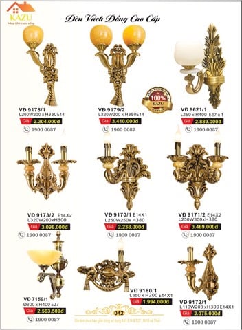 Đèn vách đồng cao cấp KAZU