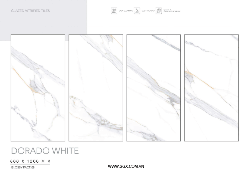- Chất liệu Glossy của gạch bóng loáng cho phép ánh sáng phản chiếu trên bề mặt, làm tăng độ sáng và sự rực rỡ của gạch