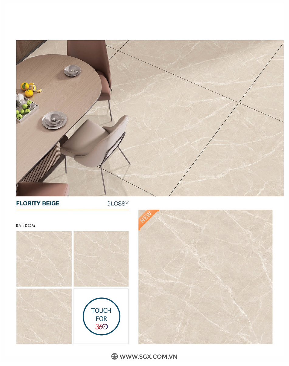 - Chất liệu Glossy của gạch bóng loáng cho phép ánh sáng phản chiếu trên bề mặt, làm tăng độ sáng và sự rực rỡ của gạch..