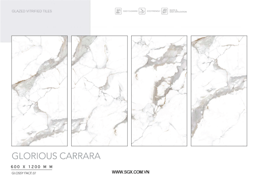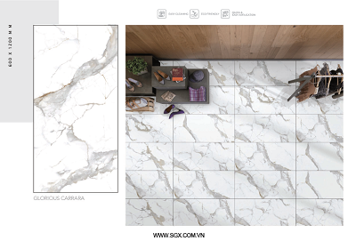 - Chất liệu Glossy của gạch bóng loáng cho phép ánh sáng phản chiếu trên bề mặt, làm tăng độ sáng và sự rực rỡ của gạch