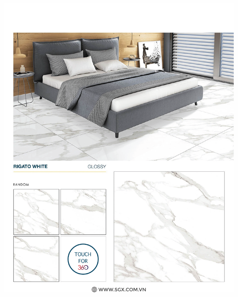 - Chất liệu Glossy của gạch bóng loáng cho phép ánh sáng phản chiếu trên bề mặt, làm tăng độ sáng và sự rực rỡ của gạch..
