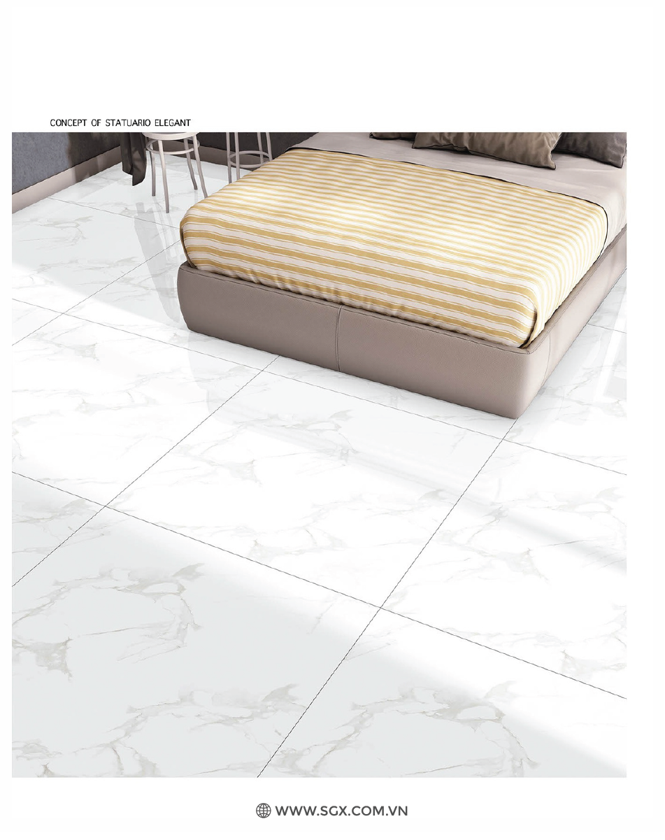 - Chất liệu Glossy của gạch bóng loáng cho phép ánh sáng phản chiếu trên bề mặt, làm tăng độ sáng và sự rực rỡ của gạch..