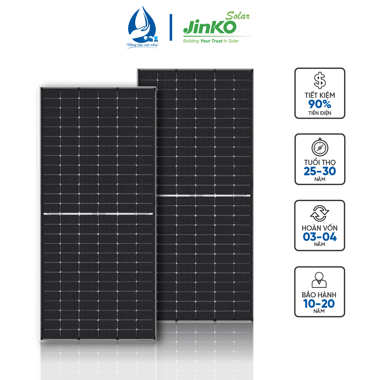 Slogan "Nâng tầm cuộc sống!" phản ánh cam kết cung cấp giải pháp năng lượng mặt trời bền vững và hiệu quả.