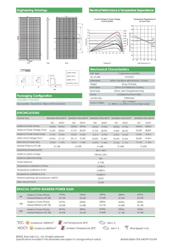 | Mô hình mô-đun | JKM545M | JKM550M | JKM555M | JKM560M | JKM565M |
