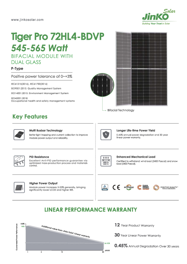Tấm pin năng lượng mặt trời Jinko Tiger Pro không chỉ là một lựa chọn hiệu quả mà còn là sự đầu tư bền vững cho hệ thống điện mặt trời của bạn.